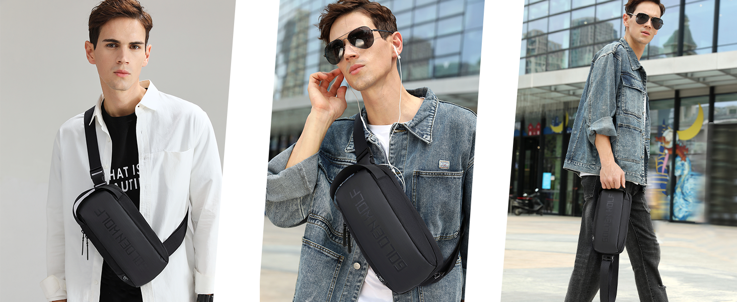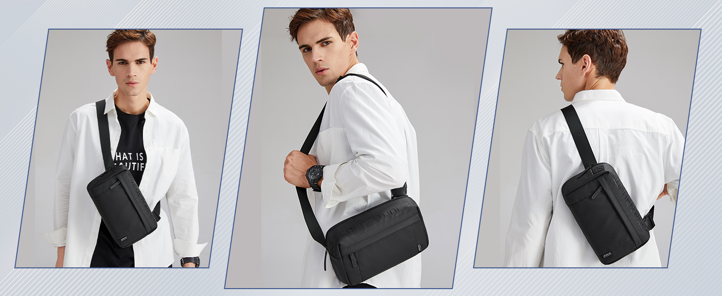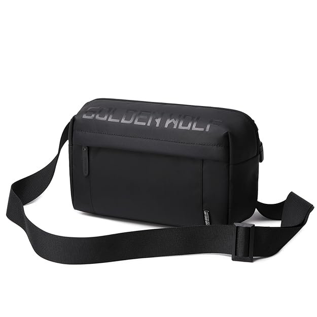 GOLDEN WOLF Sling Bag for Men 3L Small Side Bag for 8.3″ iPad & Mobile Lightweight Crossbody Bag Water-resistant Shoulder Bag for Daily Use Messenger Bag for Office, Black