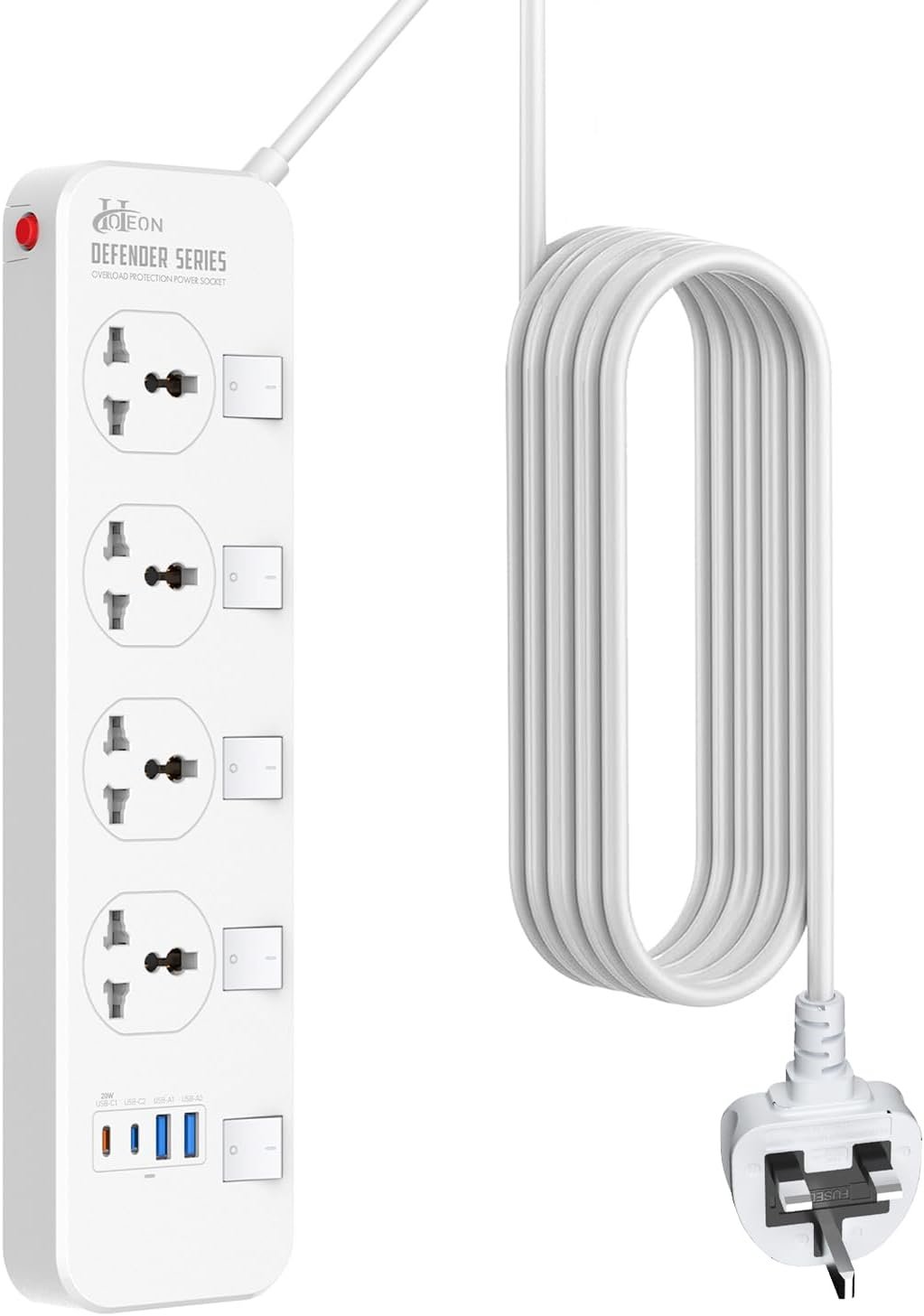 Power up your home or office safely and efficiently with the Hoteon 2500W Extension Board with USB Slots – a high-performance power strip designed for modern electrical needs.