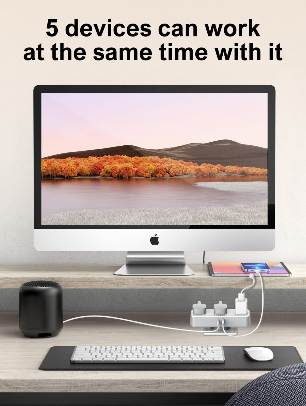 - Additionally, this extension socket is thoughtfully designed to accommodate multiple devices at the same time. Featuring three AC outlets and two USB ports, it allows you to charge up to five devices simultaneously. Furthermore, it protects your electronics against power spikes, fluctuations, and electromagnetic interference, ensuring both convenience and safety. Whether you need to power a laptop, smartphone, or home appliance, this device has you covered.