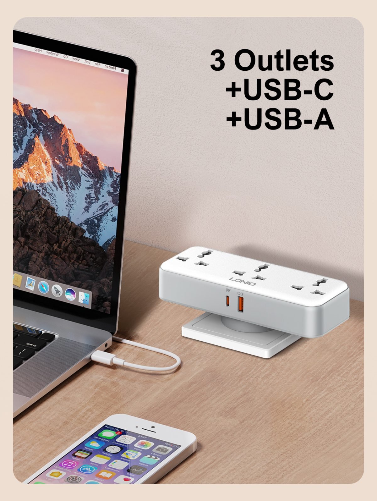 - The LDNIO SC3317 3 AC Outlets Portable Extension Power Socket is the ideal solution for powering your devices efficiently and safely. With 30W high power, it ensures rapid charging for tablets and phones that support PD3.0 and QC3.0 fast-charging protocols. Moreover, its versatile output of 2500W makes it suitable for various household appliances and mobile devices, offering reliability for both small and large gadgets.