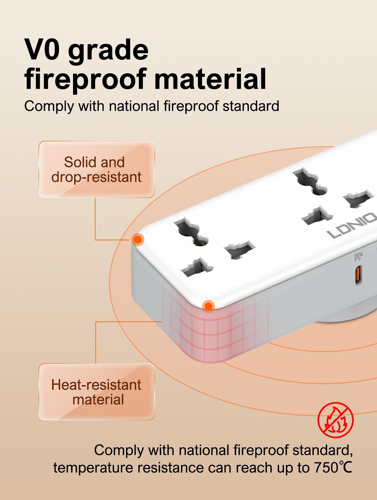 - Besides its practical design, the LDNIO SC3317 is built to last, combining durable materials with advanced technology. Moreover, it’s engineered to accommodate large adapters without blocking other outlets, offering even greater versatility.