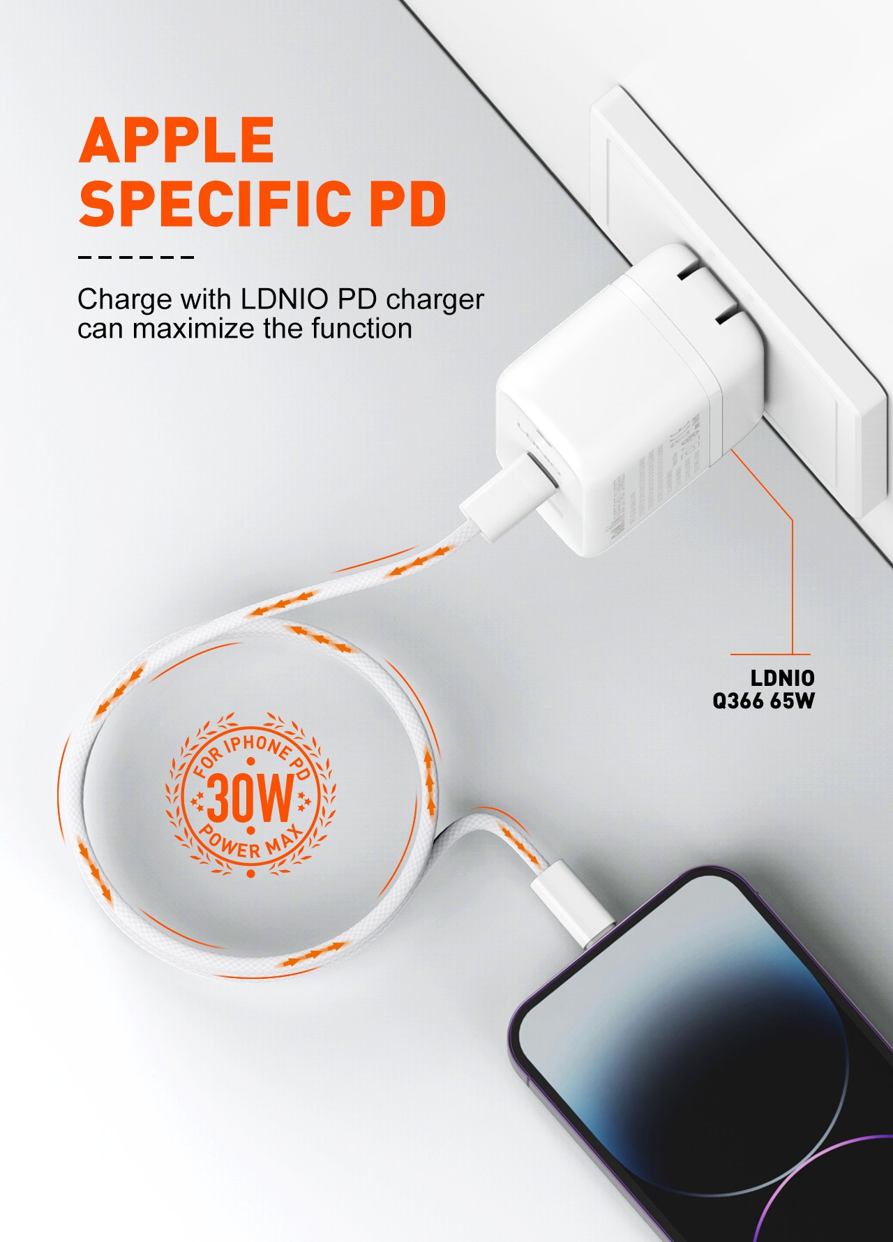 LDNIO Cable Data LC901i Kabel USB C to Lightning 30W for iPhone PD Fast-1m