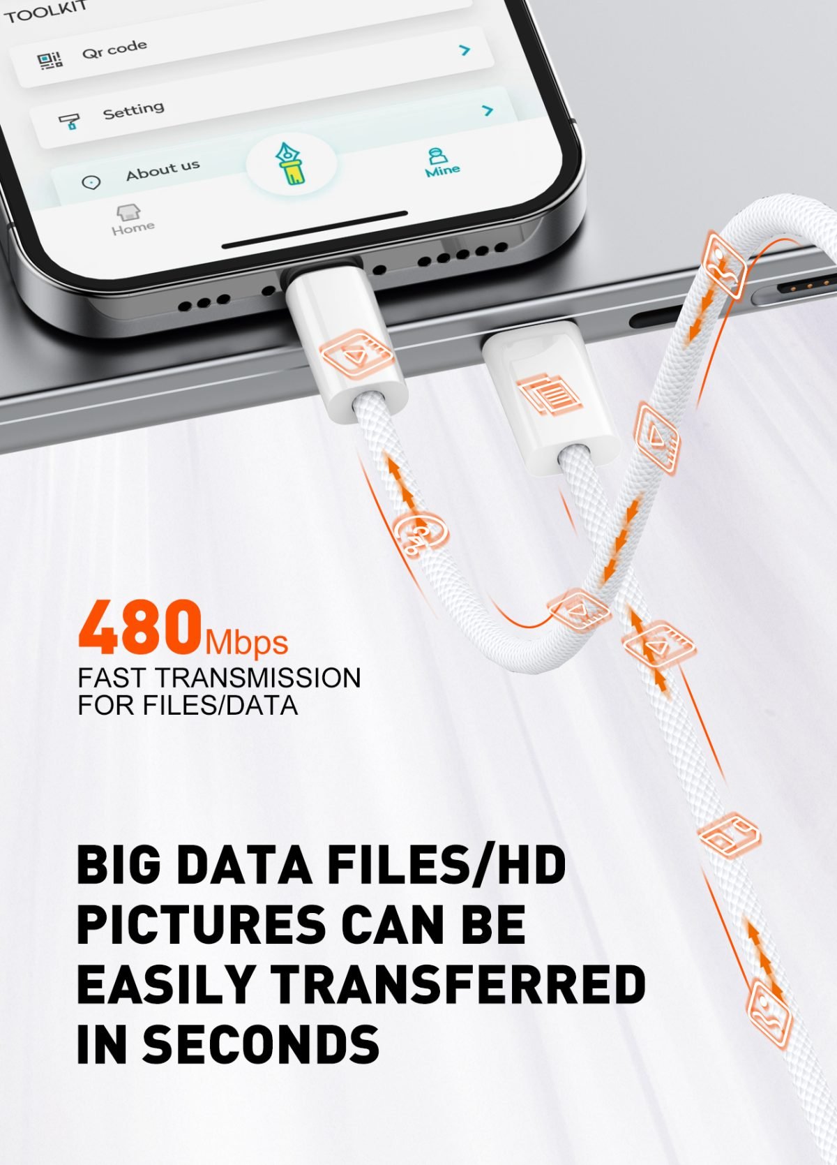 • Material: TPE Anti Bending, Wear Resistant & Anti Tangle Compatible for iPhone with Lightning port