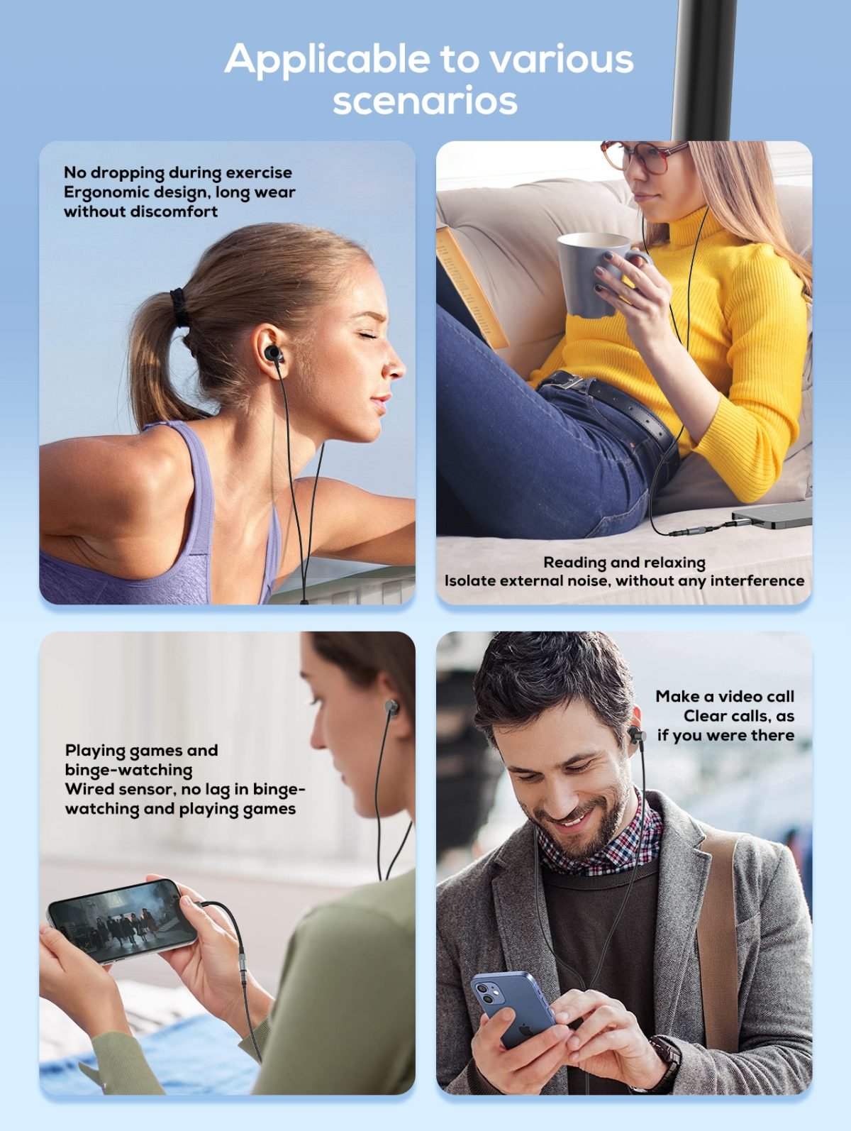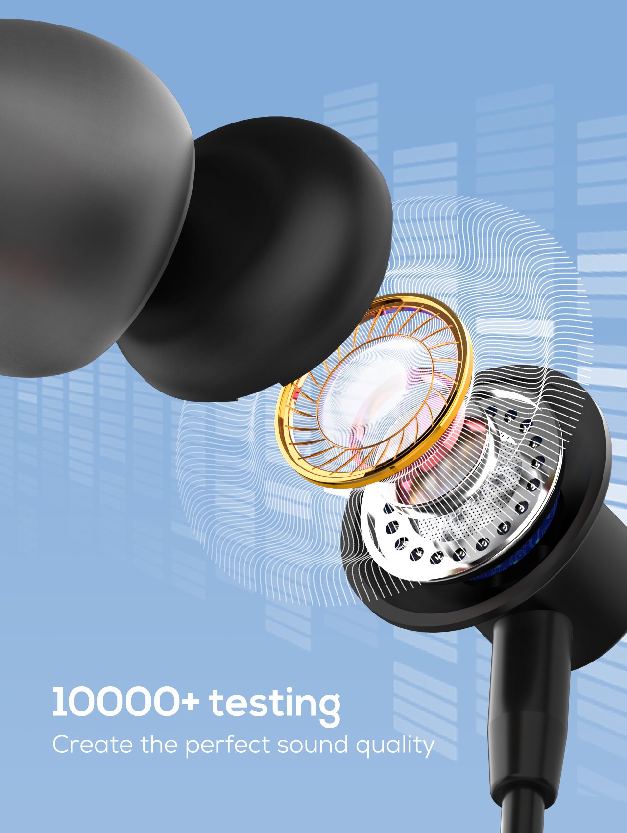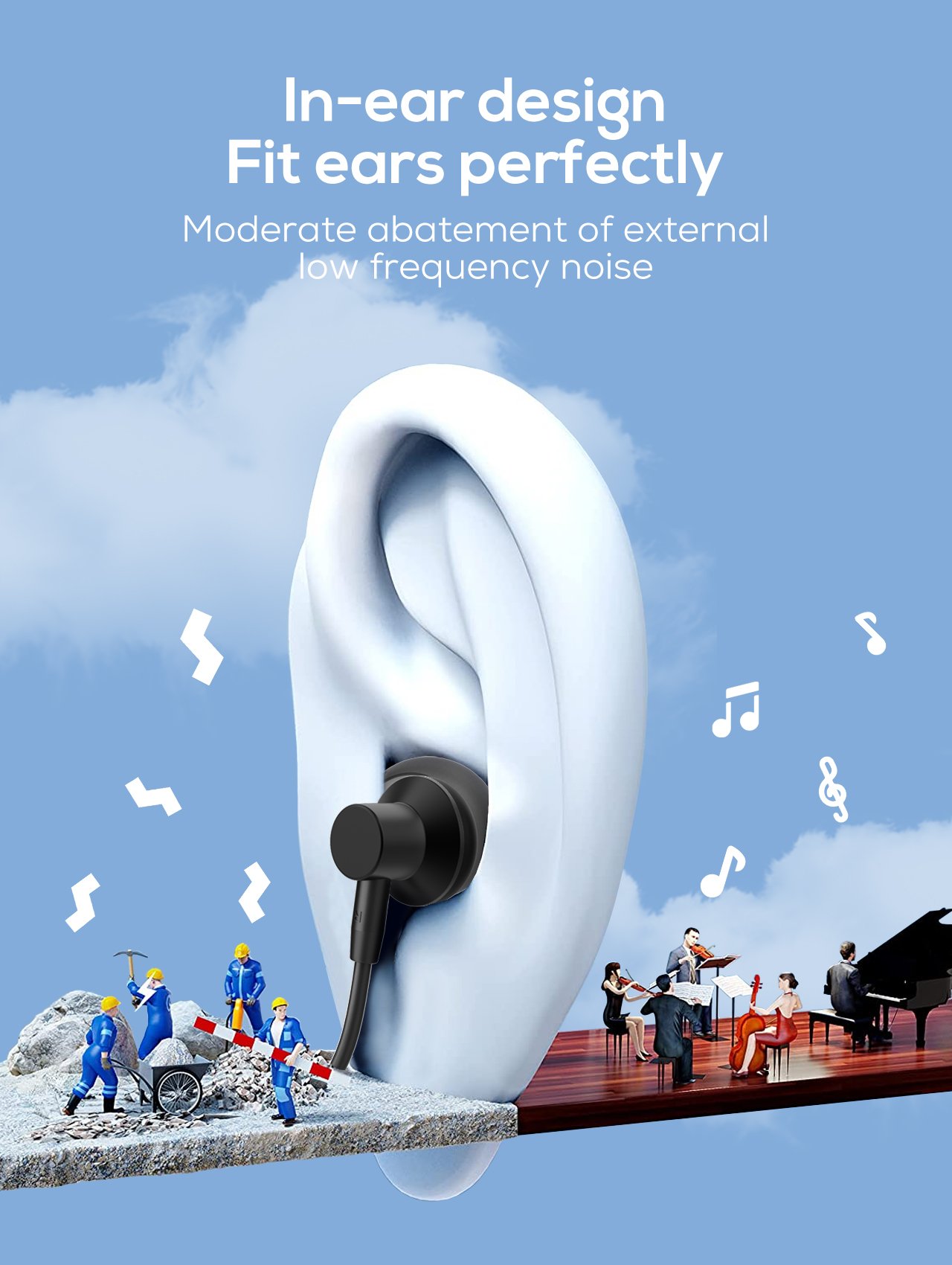Using skin-friendly silicone ear buds which fit our ear better and more softly.