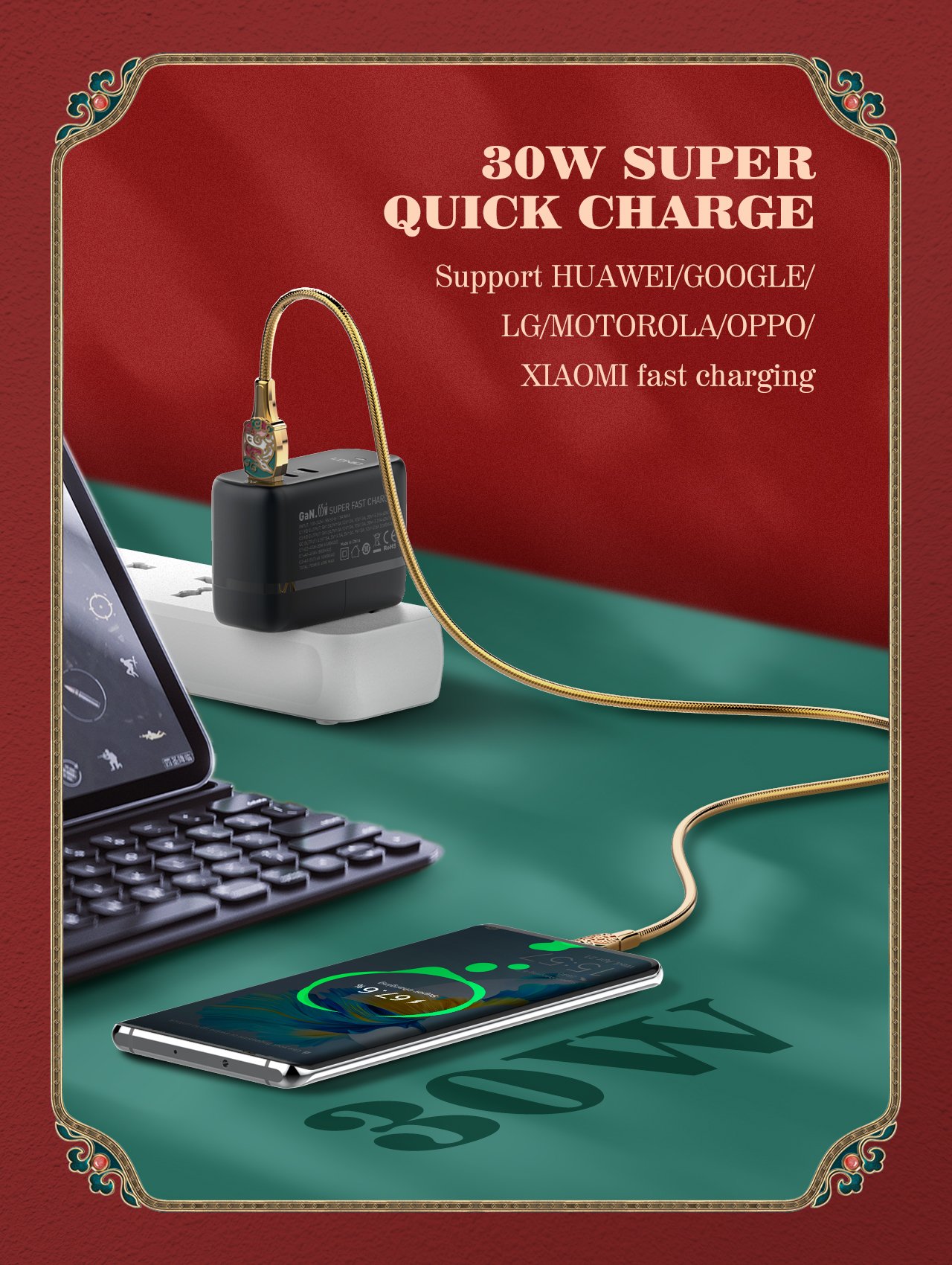 The cable is available in Micro USB, Lightning, and Type-C variants, ensuring wide compatibility with laptops, smartphones, and other digital devices. With a sleek gold finish and a sturdy private mold design, it offers both style and reliability.