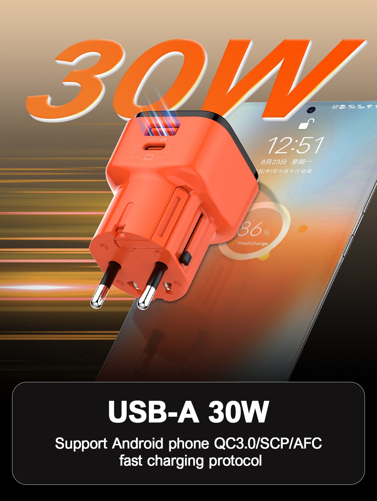 USB-A Output: 5V/3A, 9V/3A, 12V/2.5A (30W Max)