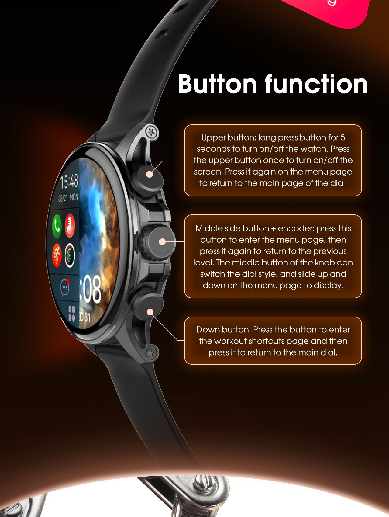 • Vivid AMOLED Display: 1.58-inch screen with 480×480 resolution and 1000-nit brightness for crystal-clear visibility.