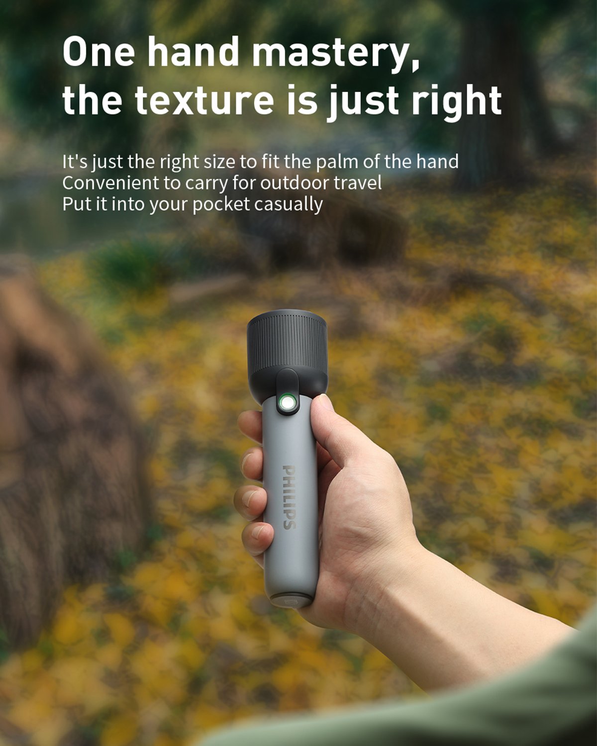 Built with a compact structure (47.2 × 30.8 × 170.8mm), this flashlight easily fits in your palm, pocket, backpack, or car compartment. Its lightweight and ergonomic body ensures a comfortable grip for extended use.