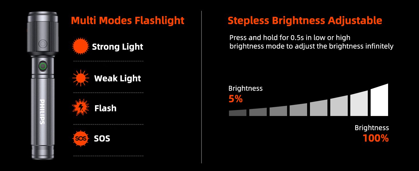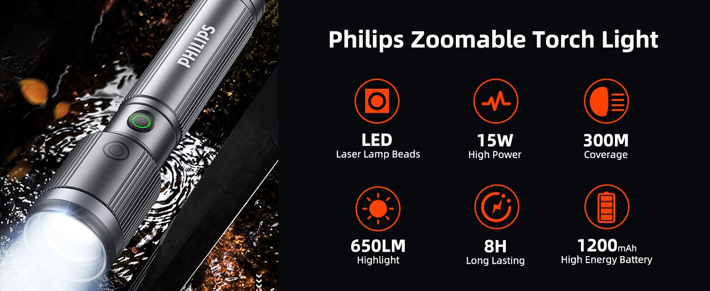 Upgrade your lighting experience with the Philips SFL2141/56, a premium rechargeable LED flashlight engineered for power, precision, and durability. Built with aircraft-grade aluminium alloy and equipped with advanced lighting control, this compact yet powerful torch is ideal for outdoor adventures, security use, emergency situations, and everyday carry.