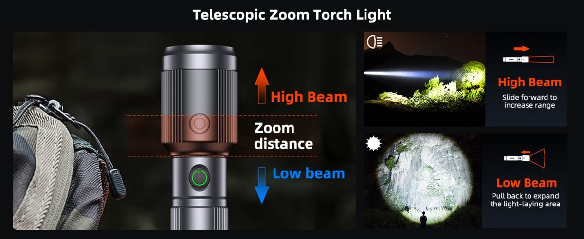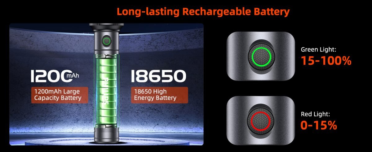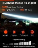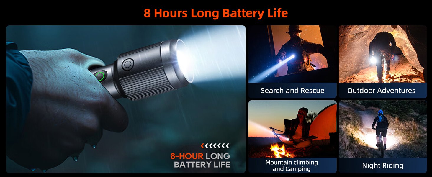 Delivering up to 650 lumens brightness, this high-performance flashlight easily lights up dark environments with sharp clarity. Whether you’re camping, searching, patrolling, or handling power outages, it ensures reliable visibility when you need it most.