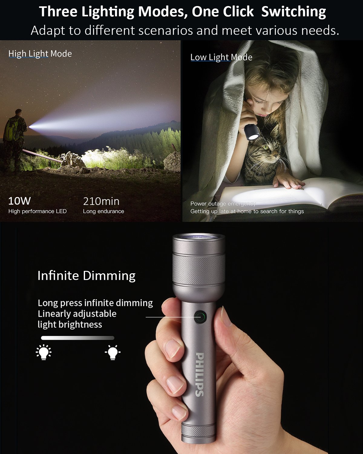 Powerful, durable, and intelligently designed — the SFL2186R/56 delivers high-performance lighting with a sleek oxidised sand-blasted aluminium body. Built for outdoor adventures, emergency situations, and professional use, this flashlight combines strength with advanced lighting control.