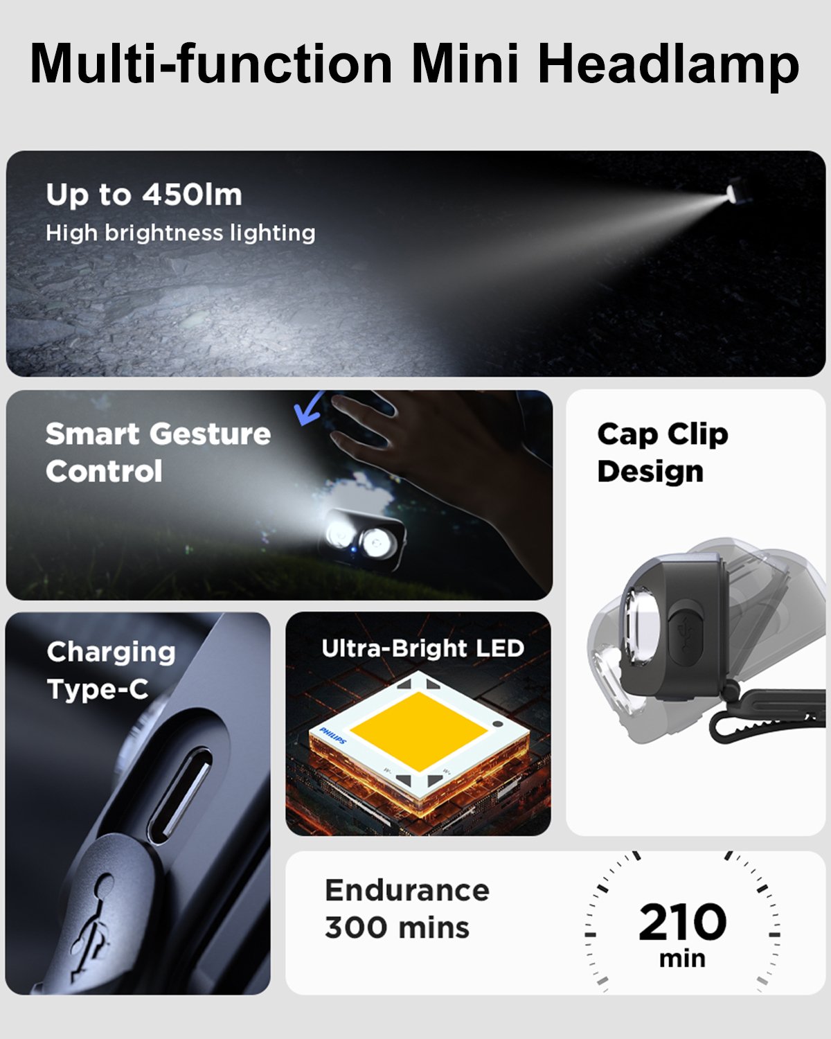 • Brightness: Up to 450 lumens