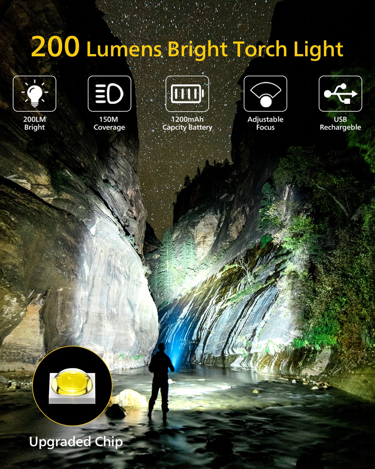 Despite its compact size, this mini torch produces up to 200 lumens brightness with a maximum beam distance of 150 meters. Whether you’re navigating dark trails, handling home repairs, or facing a power outage, it provides dependable lighting when you need it most.