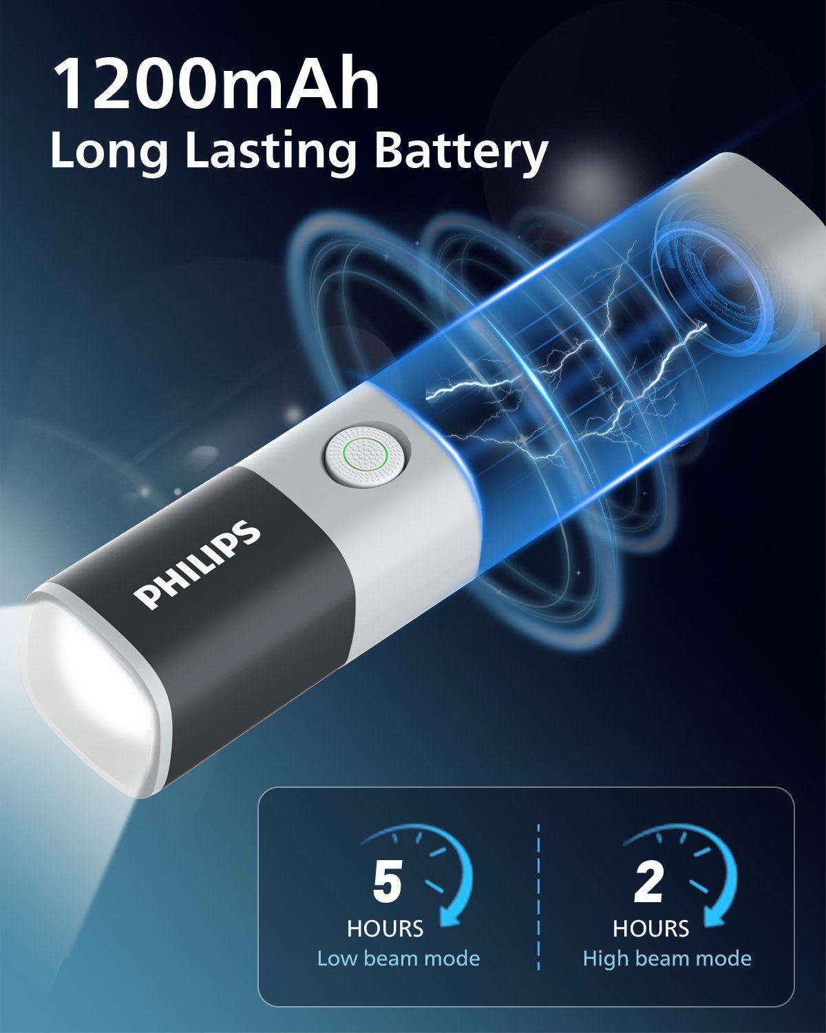 Built-in 1200mAh high-capacity lithium battery provides: