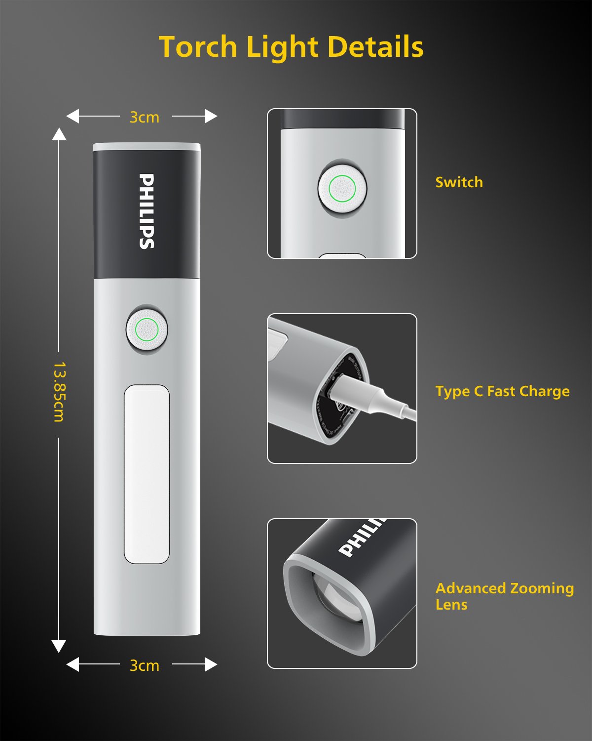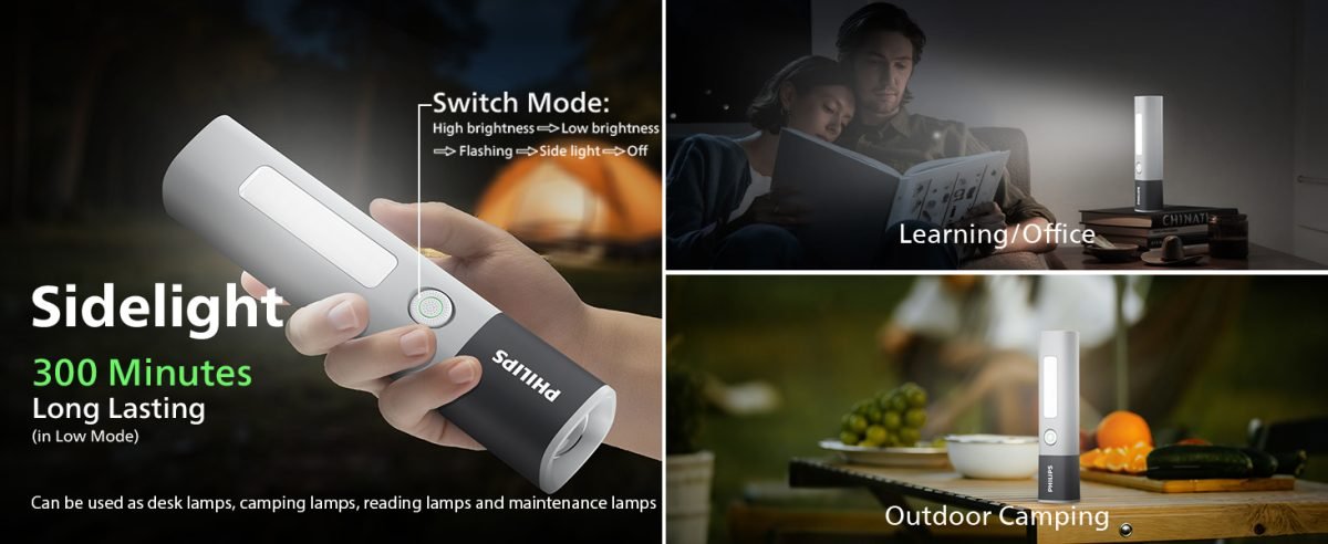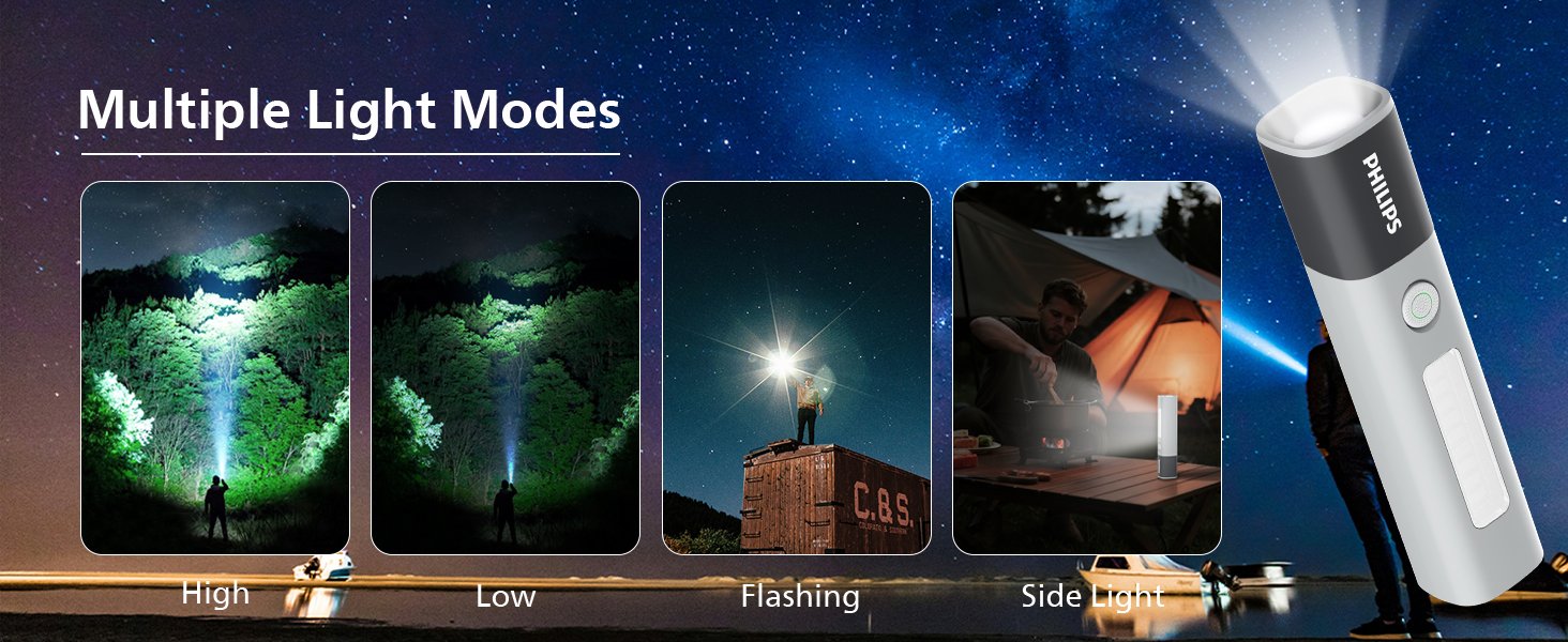 Compact yet powerful, this 200 lumens mini LED flashlight is designed for everyday carry, camping, hiking, and emergency use. With a telescopic zoom system, side white light, and rechargeable battery, it delivers reliable illumination in both indoor and outdoor environments.
