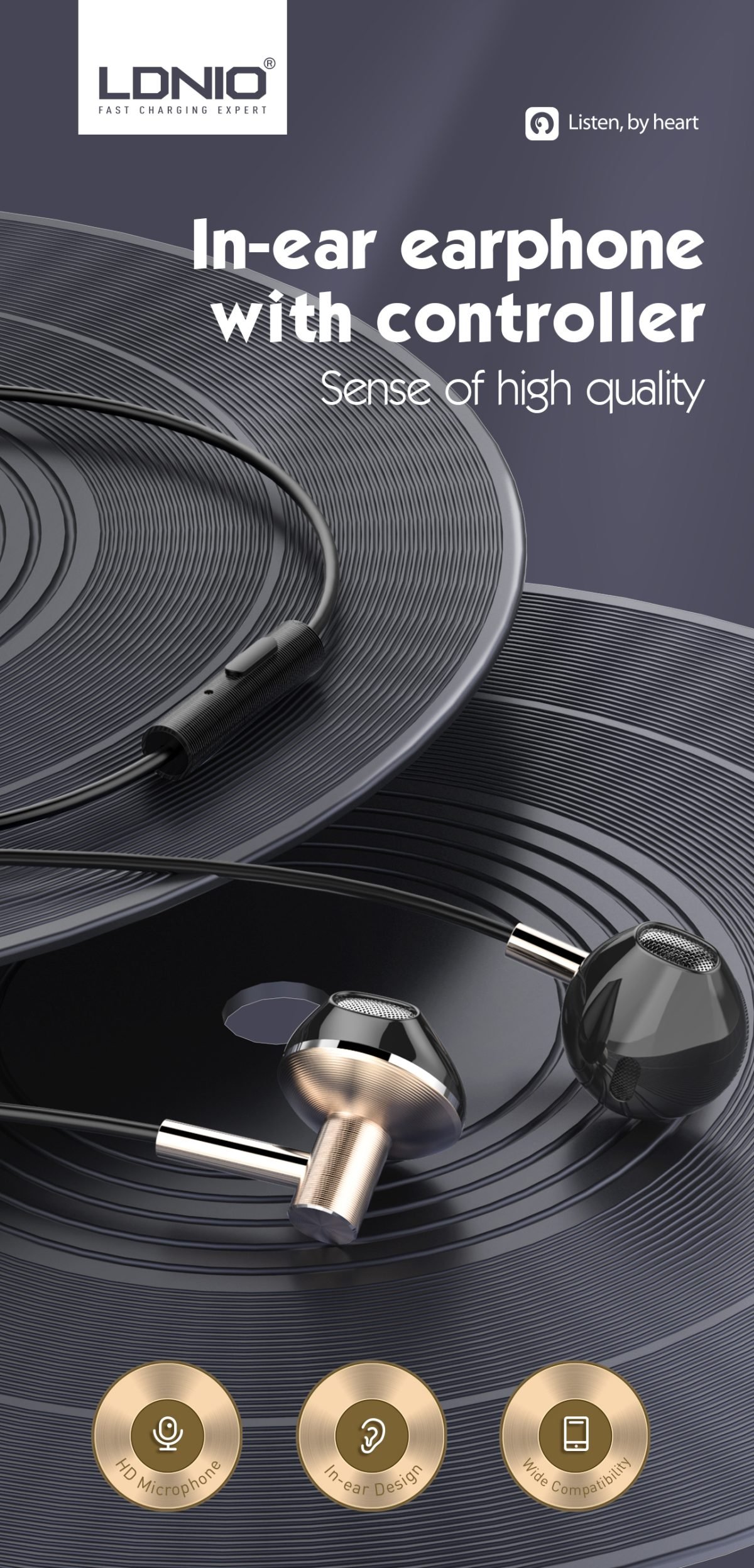 The HP09 Wired Earphone combines elegant design with reliable performance, making it perfect for everyday listening. Finished in a stylish rose gold color, it delivers a premium look with a lightweight and comfortable fit.