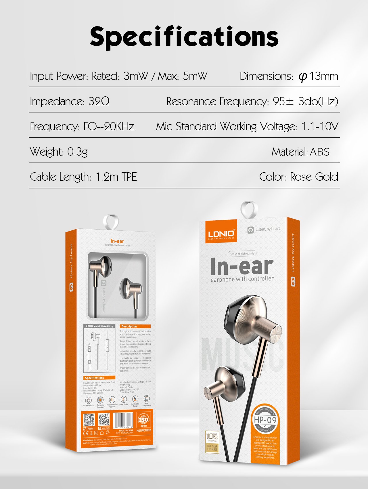 Designed with a durable plastic body and a flexible 0.6m TPE cable, the HP09 is lightweight at just 0.3g, making it comfortable for extended use while resisting daily wear and tangling.